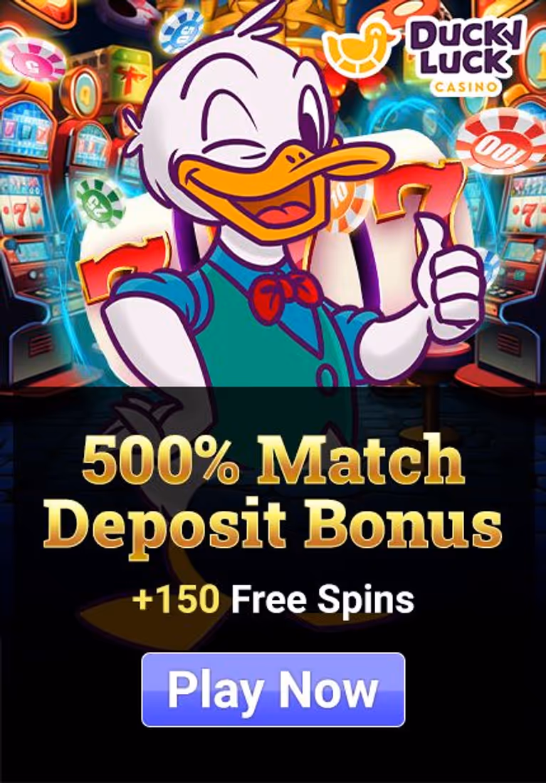 If you like big bonuses and a lively slot lobby, DuckyLuck Casino is worth a look — I signed up and found the welcome offer hard to ignore, and you might too; if you want to try it, the sign-up is straightforward and the promo is front and center. The platform dresses its deals in eye-catching numbers — a massive match bonus and dozens of tailored promotions — so if bonus value matters to you, this is a place to test your luck with a modest first deposit.